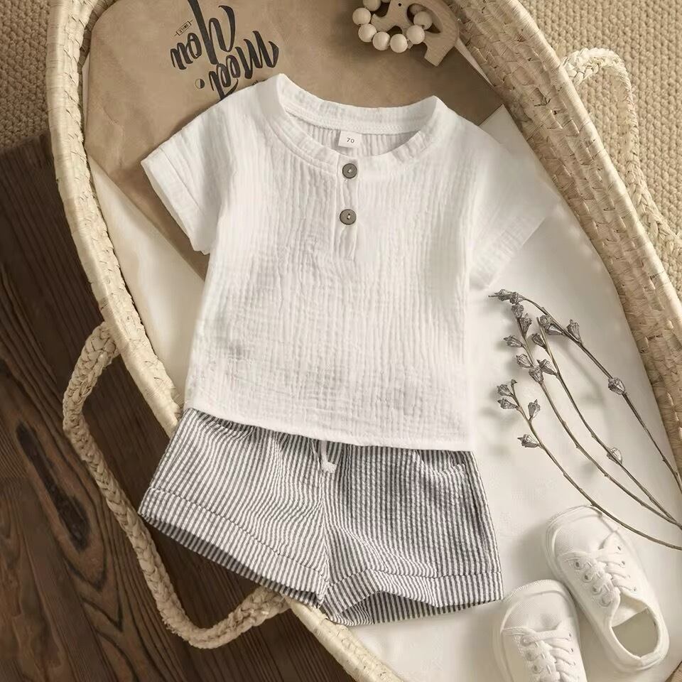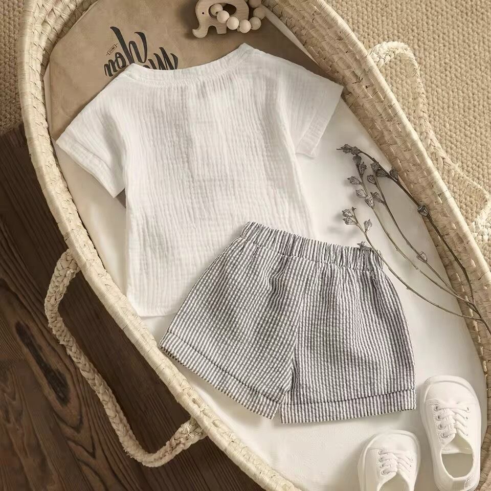 無地とストライプの組み合わせが絶妙なセットアップです♫